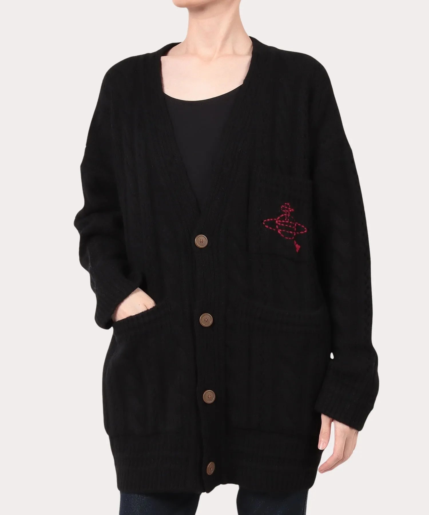 Stay effortlessly cozy and stylish with this Cable Knit Cardigan, crafted for those who appreciate timeless texture with a modern twist. The detailed cable and pointelle knit pattern adds depth, while the embroidered chest logo delivers subtle statement energy. Whether you're lounging or layering for a day out, this cardigan brings warmth, comfort, and easy-going charm to your wardrobe. Available in versatile beige and black.