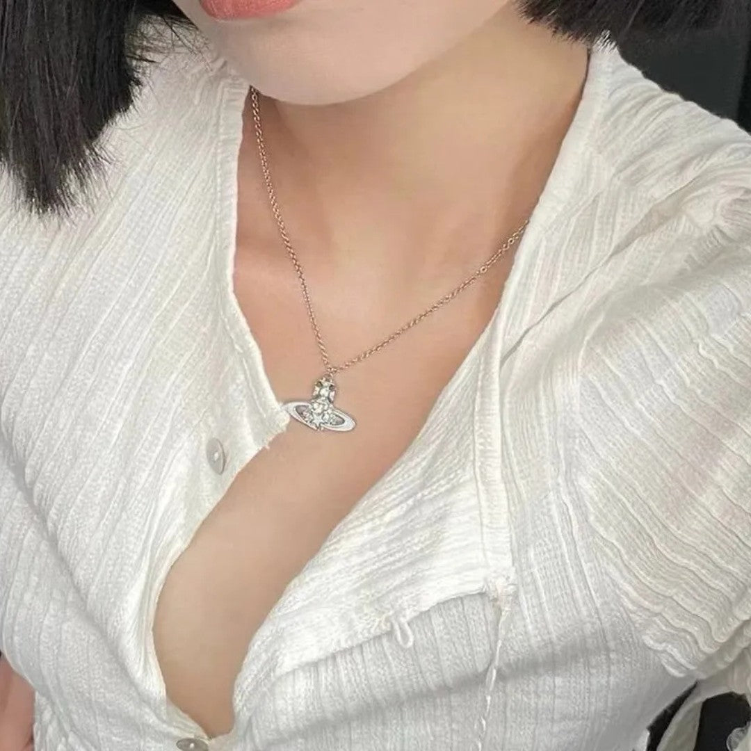 Embrace cosmic elegance with this sparkling Saturn pendant featuring a luminous star at its core. The intricate crystal embellishments add a radiant shimmer to any look. Designed for dreamers, it's a perfect statement piece for daily wear or special occasions.