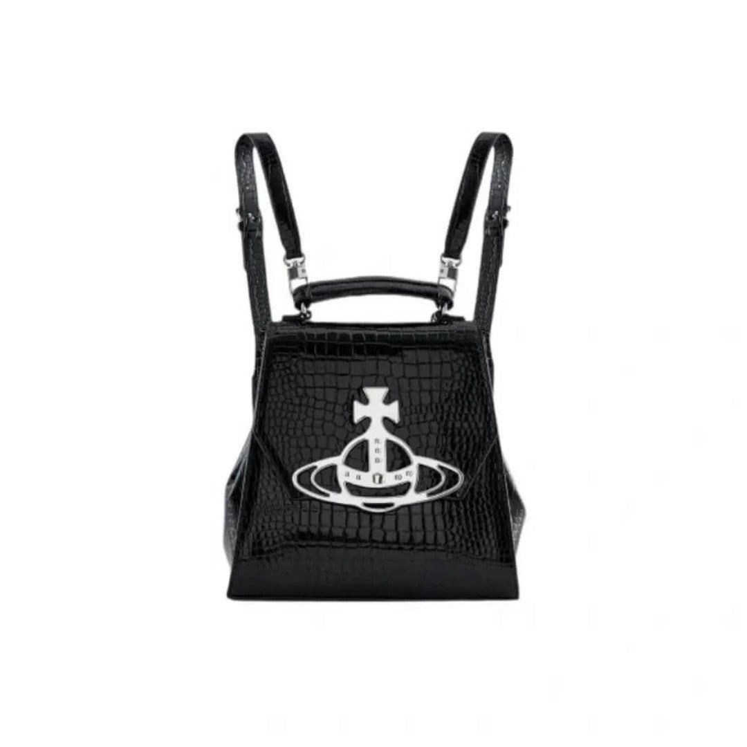 Designed with a structured silhouette and striking croc-texture finish, this mini backpack delivers a luxe edge to casual wear. The oversized emblem and metallic accents make it a standout piece for day or night.