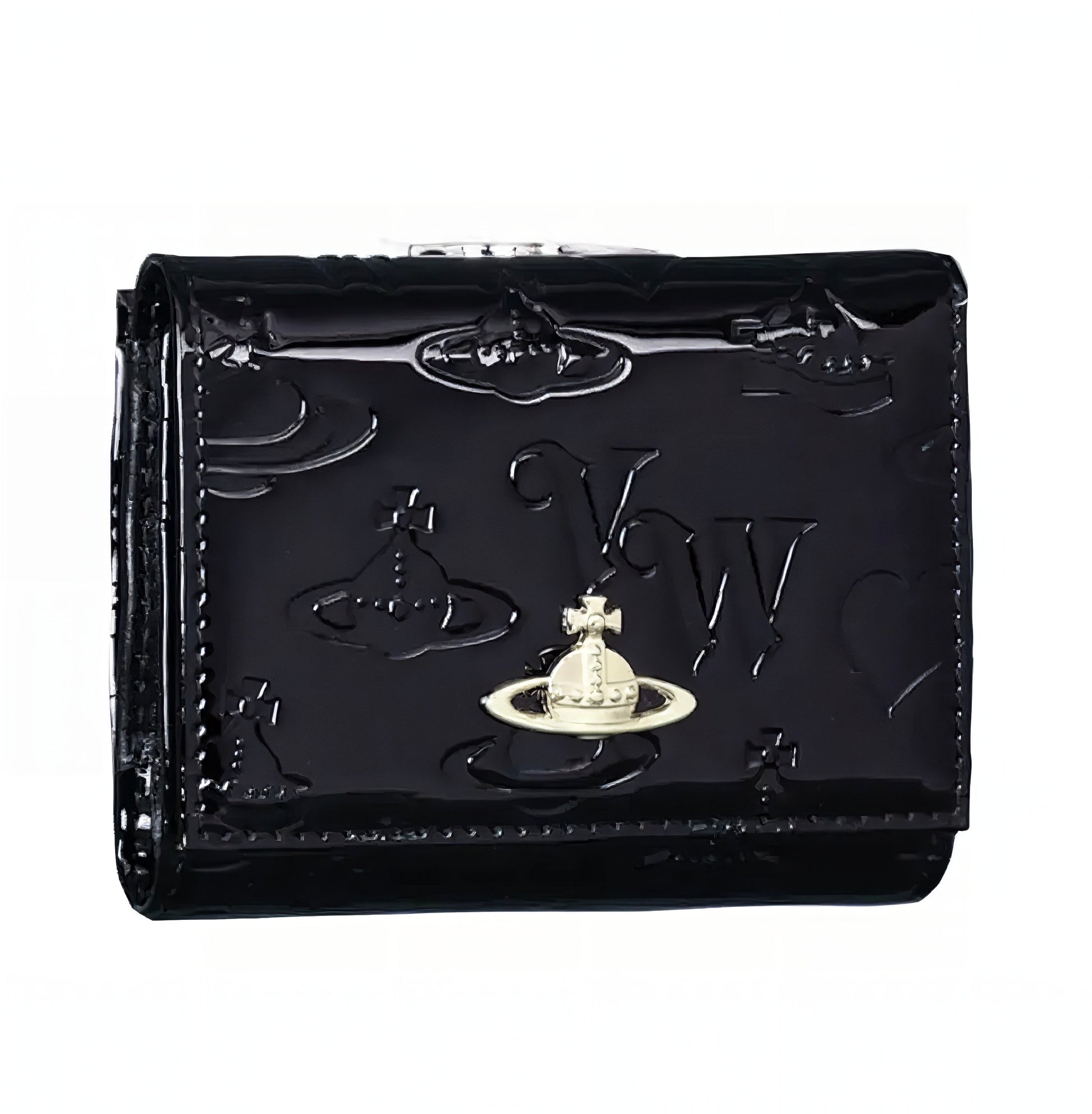 This compact and sleek tri-fold wallet features the iconic Orb in black enamel, offering a stylish yet practical accessory. Made from premium leather, it combines both functionality and timeless design.