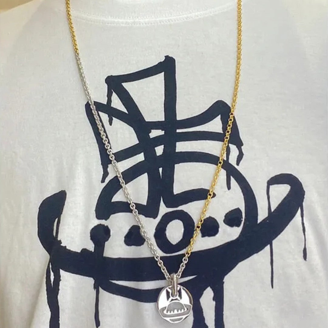 Upgrade your layered look with the IMOGENE Round Sweater Necklace featuring a polished Saturn cut-out pendant on a dual-tone chain. The lightweight design makes it ideal for pairing with sweaters or casual tops. A simple yet bold daily essential.