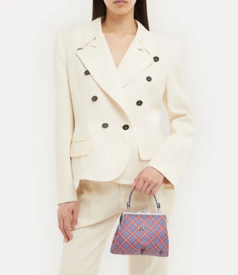 A charming revival of vintage style with a fresh plaid pattern. This frame purse offers timeless elegance paired with playful flair for modern outings.