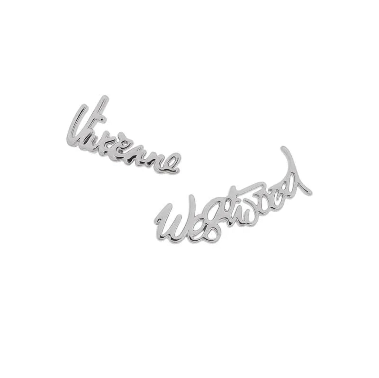 Add a touch of elegance with the Silver Calligraphy Earrings. Their delicate, artistic script design brings a sophisticated flair to any outfit, making them perfect for both everyday wear and special occasions.