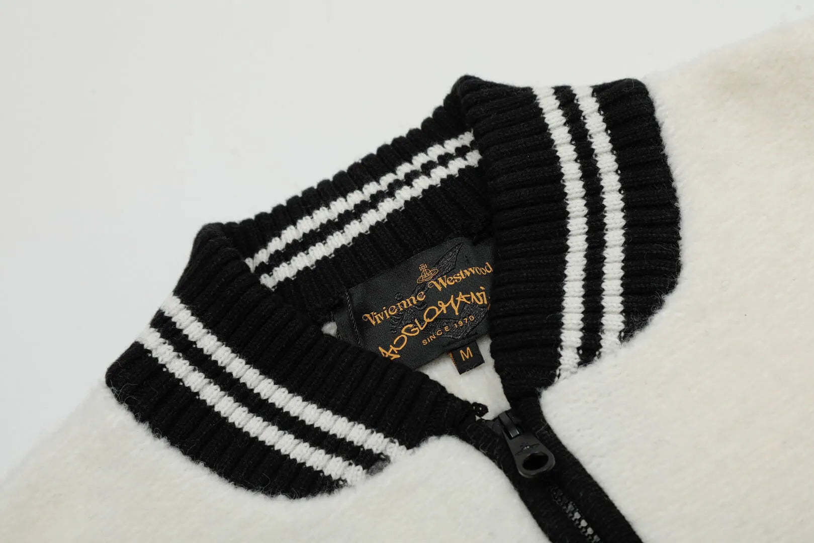 A contemporary twist on classic varsity style, the Varsity Zip Knit Bomber merges comfort with bold statement design. Crafted with a plush textured knit, it features contrast striped accents along the collar, cuffs, and hem for a sporty finish. The full-zip closure and the iconic embroidered orb emblem on the chest elevate its visual appeal, offering a balance of casual edge and luxury flair. Ideal for transitional weather or layering.