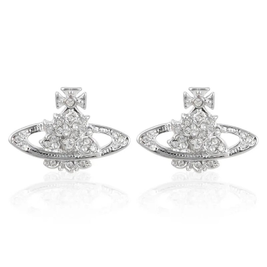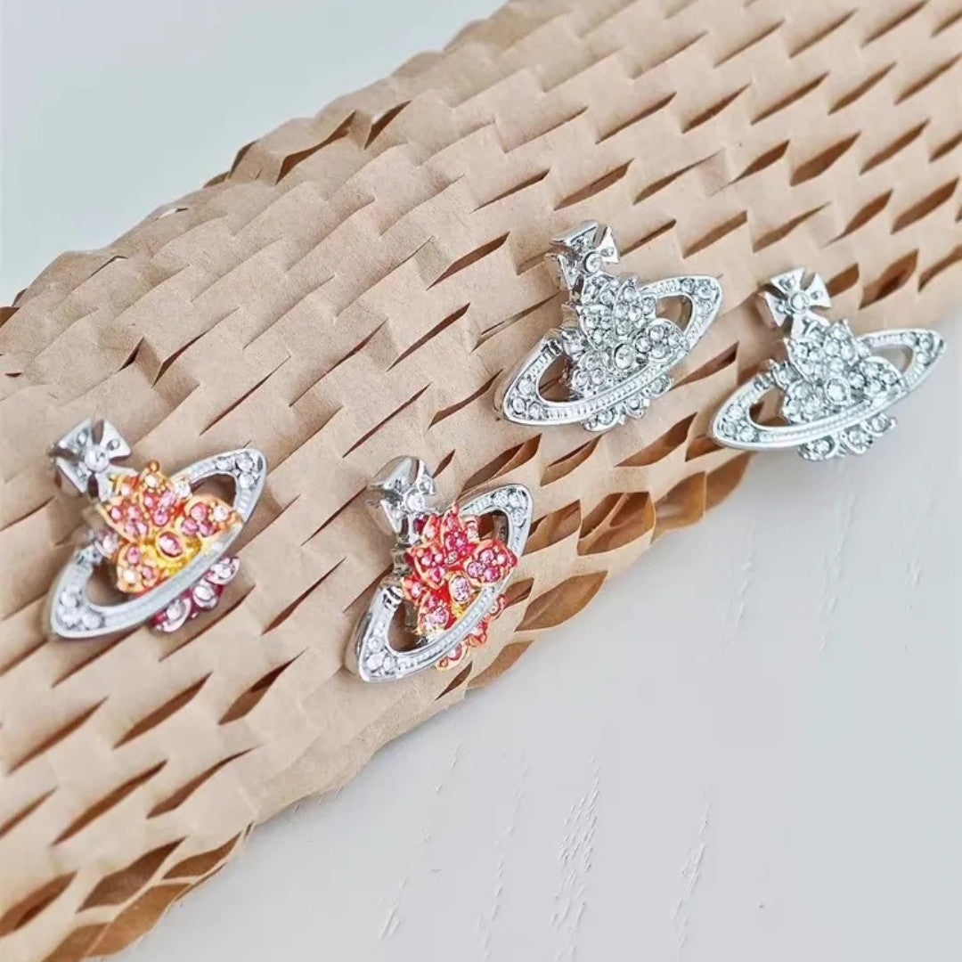 The Wildflower Saturn Earrings blossom with galactic charm. Featuring a spray of crystal-studded wildflowers nested within a classic Saturn ring silhouette, these earrings capture the spirit of celestial romance and earthly elegance. Ideal for those who love their accessories with a poetic touch.
